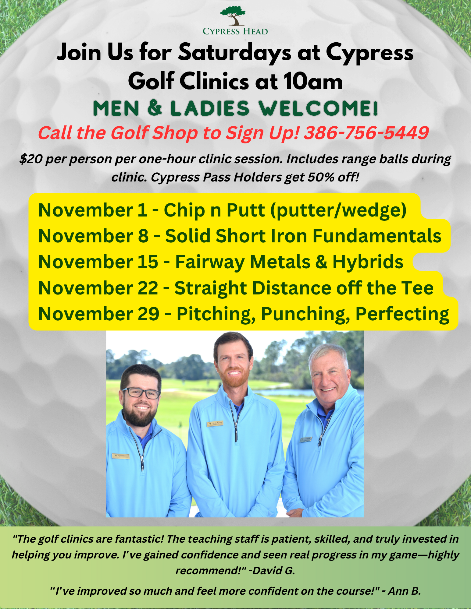 Ready to take your golf skills to the next level? Join us weekly for Saturdays at Cypress!