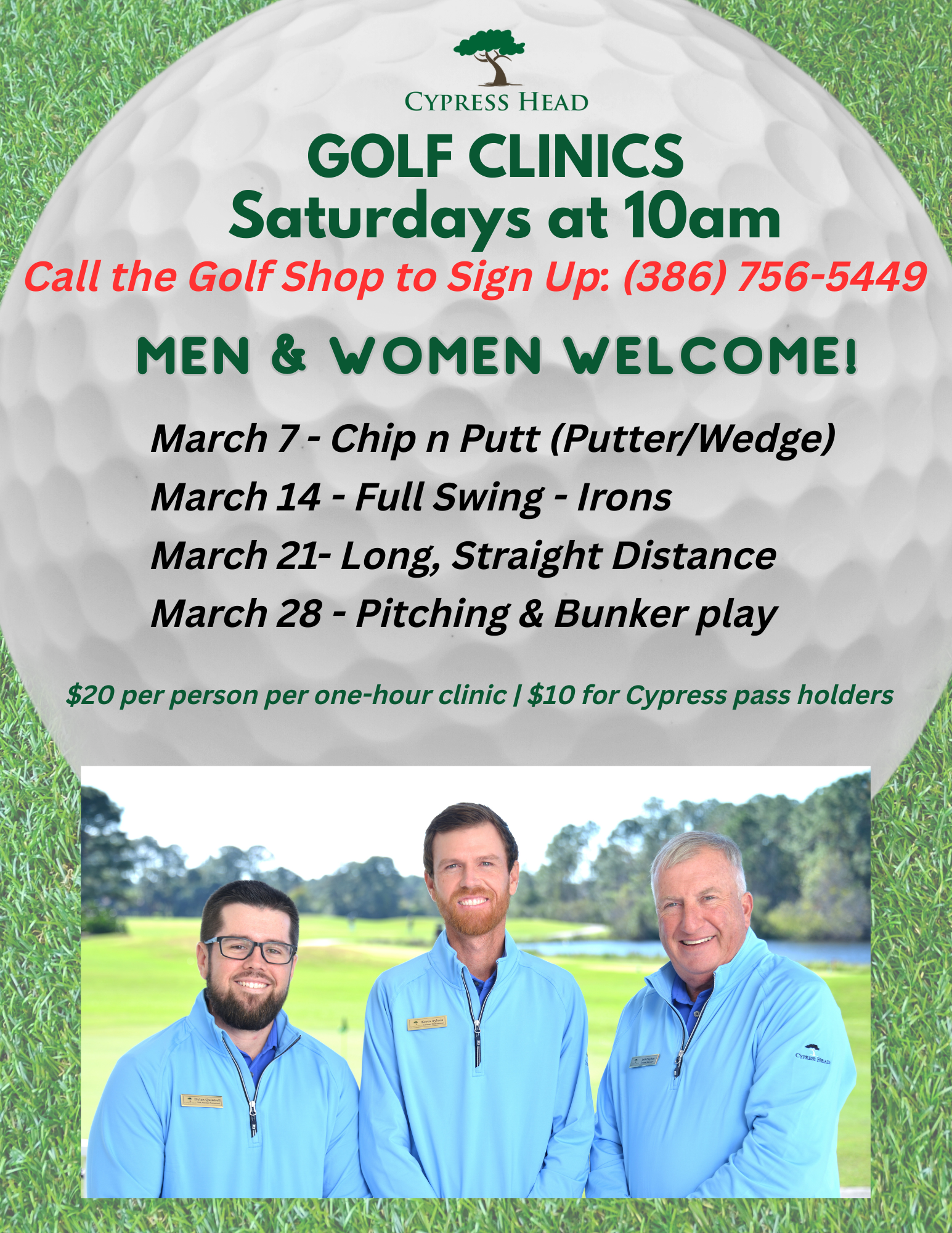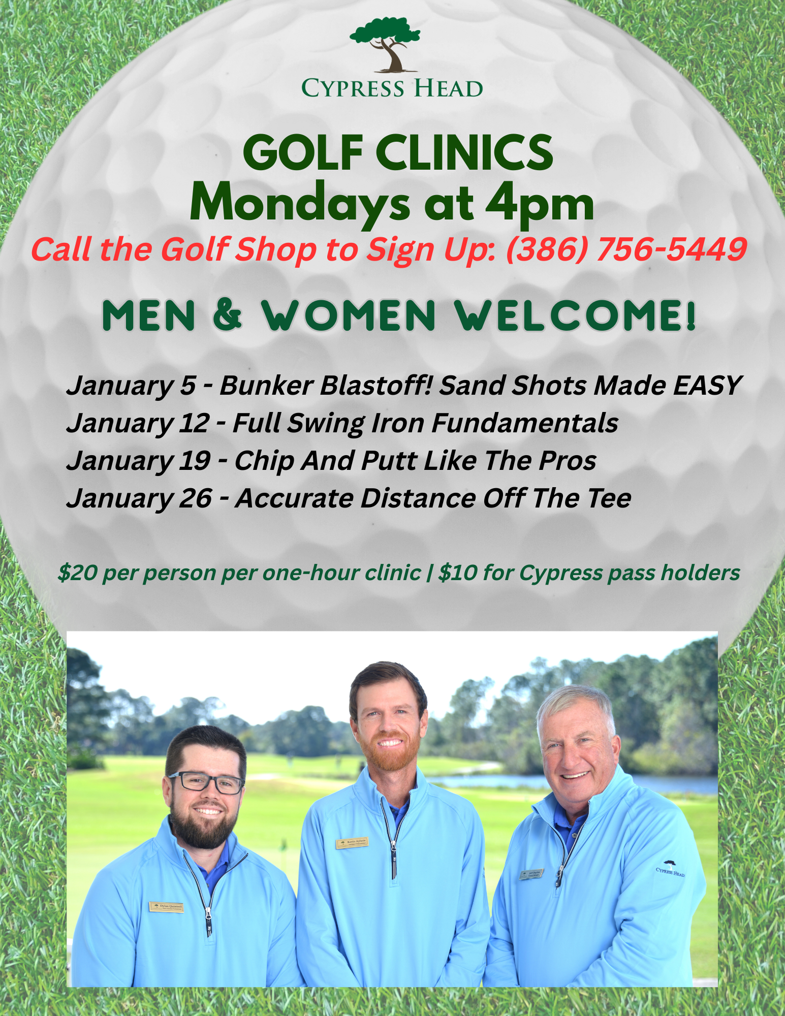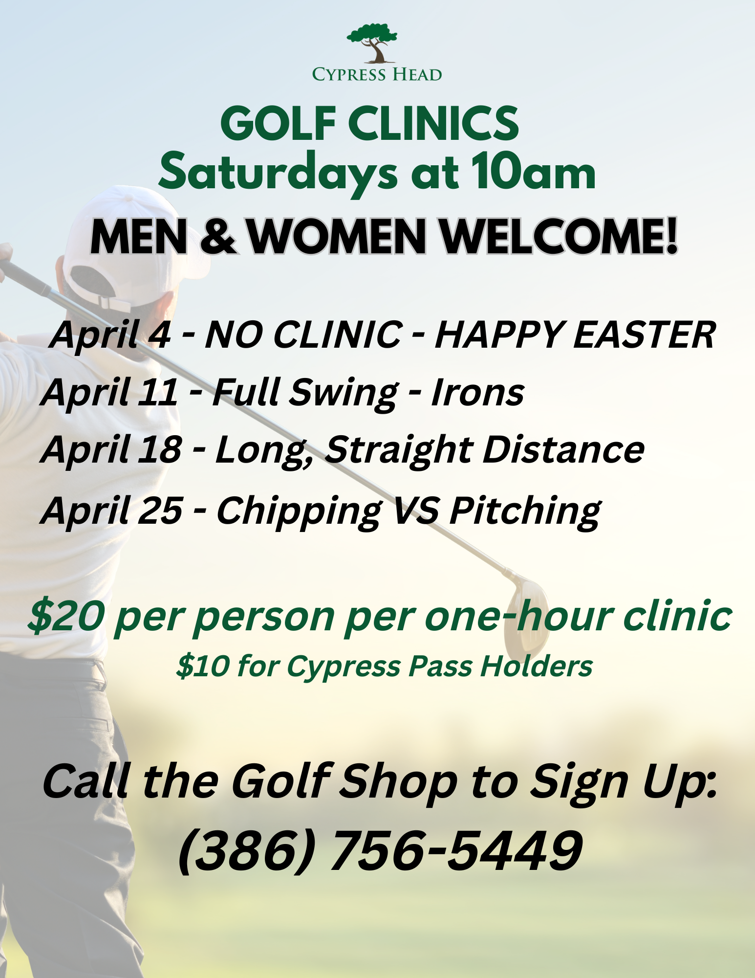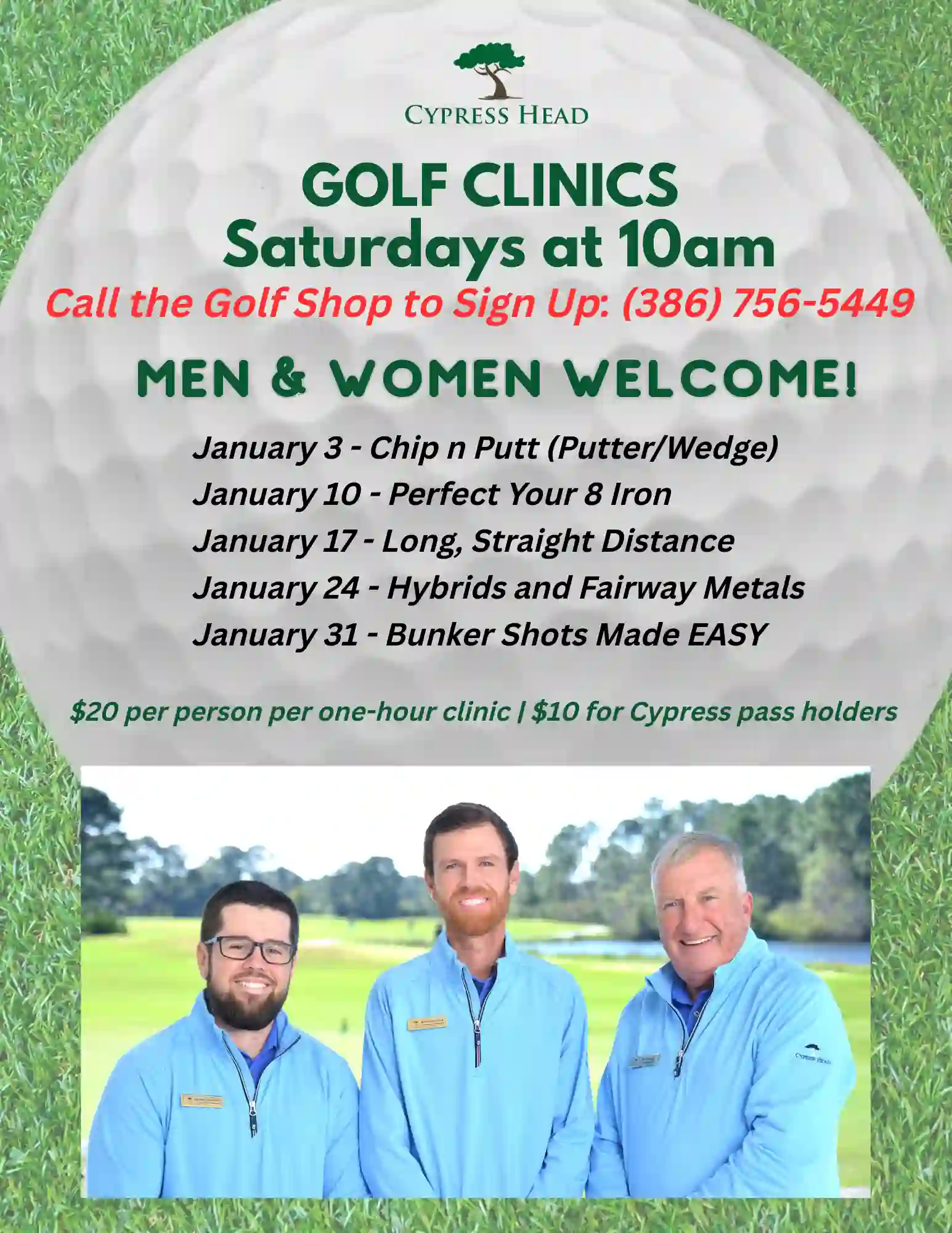 Don’t miss out on this chance to elevate your game and connect with fellow golf enthusiasts. Call the Golf Shop to reserve your spot today and get ready to tee off towards success! (386) 756-5449